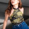 To suit it up, wear our halter top under a casual open front blazer, which makes for a great way to layer while still keeping your cool in the summer weather. For a chic evening out, try teaming it with a midi pencil skirt or fitted pedal pushers, and finish the ensemble with patent black pumps.